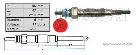 BOUGIE de PRECHAUFFAGE 11 volts HKT