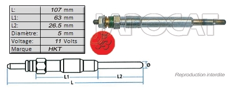 BOUGIE de PRECHAUFFAGE 11 volts HKT