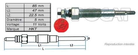 BOUGIE de PRECHAUFFAGE 11 volts HKT