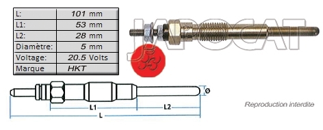BOUGIE de PRECHAUFFAGE 20,5 volts HKT