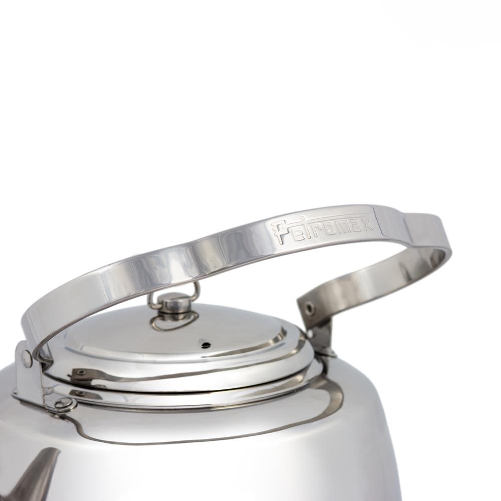 La bouilloire Petromax en acier inox de grande qualité chauffe de l'eau rapidement et facilement – aussi bien sur un feu ouvert que sur une cuisinière électrique, à induction ou à gaz. L'anse mobile à trois angles permet la suspension au-dessus du feu et un maniement agréable. La surface inférieure à couches multiples assure une parfaite répartition de la chaleur. La bouilloire est un ustensile chic et utile aussi bien en plein air, au camping et dans le jardin qu'à la maison.