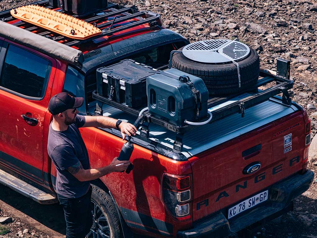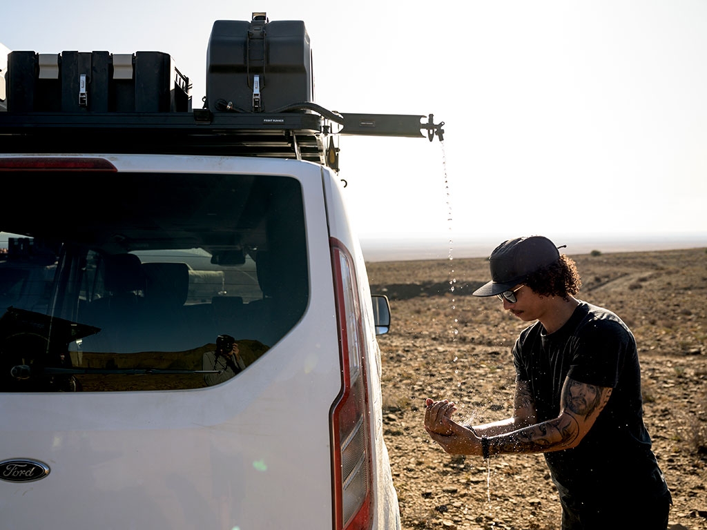 Ce support s'installe sur le profil latéral de votre galerie Frontrunner Slimline II. Ce dernier pivotre à 90° permettant à votre robinet d'eau de dégager sur le côté de votre véhicule.