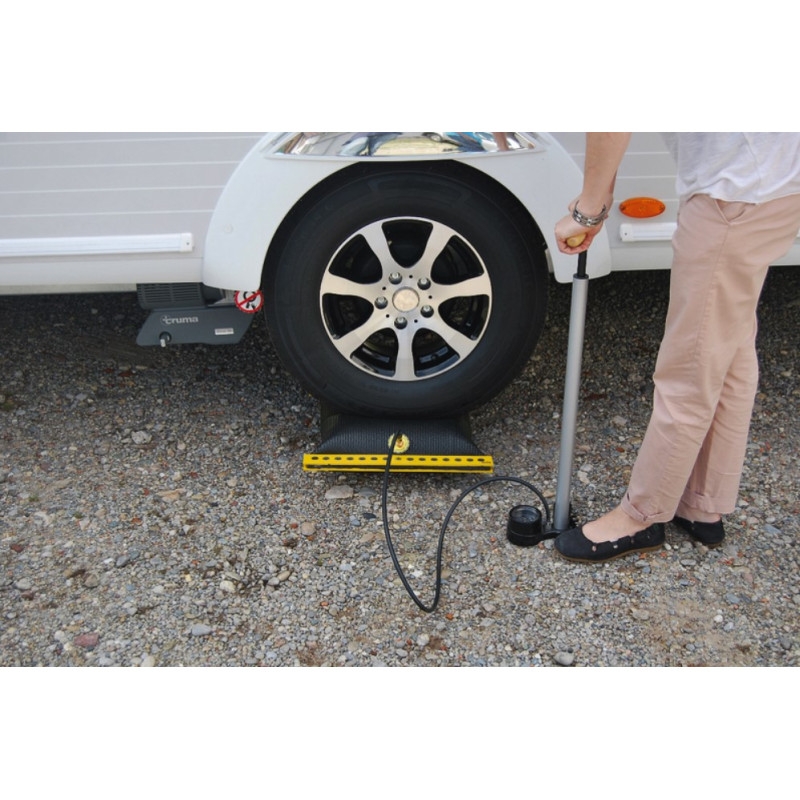 Placez votre coussin gonflable sous votre roue et gonflez le à l'aide d'un compresseur ou d'une pompe à main, pour élever votre véhicule jusqu'à 20cm.
