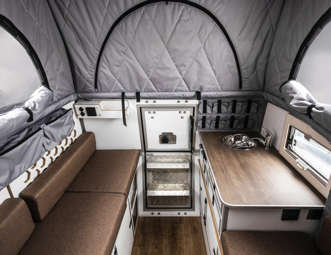 La Ormo Camper One Double Cab est la cellule la plus petite et la plus légère de la gamme Ormo ONE. Conçue à partir de panneaux sandwich de 33 mm, elle offre une grande résistance, une excellente isolation et un confort remarquable pour quatre voyageurs. Elle combine toit relevable, optimisation de l’espace et équipement haut de gamme adapté aux voyages au long cours comme aux escapades week-end.