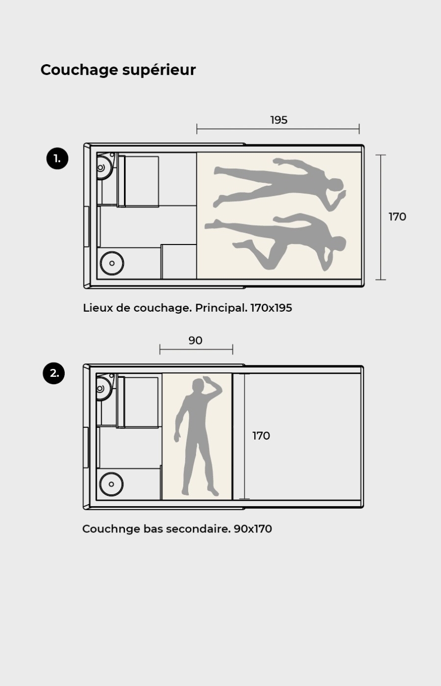• Ormo 42 (2 places) : plus compact et plus léger, parfaitement adapté aux pickups avec contraintes de charge ou de PTAC.