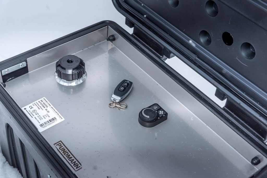 Avec un poids de 20 kg, il peut facilement être déplacé par une seule personne. dans la version avec batterie AGM et réservoir, le réservoir a un volume de 5 litres. Ainsi, le réservoir dure au moins 20 à un maximum de 50 heures de fonctionnement, la batterie permet au radiateur de fonctionner pendant au moins 12 heures, après quoi il doit être rechargé à l'aide de panneaux solaires, par exemple.