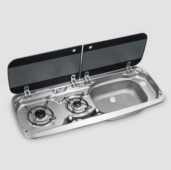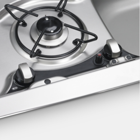 Bien pensé, ce combiné s’adapte parfaitement au coin cuisine sans l’encombrer et son couvercle en verre de sécurité résistant à la chaleur se transforme en plan de travail supplémentaire lorsque celui-ci est fermé. Cet ensemble dispose d’un système d’allumage sécurisé et les supports de poêle chromés sont amovibles pour faciliter son nettoyage. Siphon et joint en caoutchouc fournis. Robinets vendus séparément.