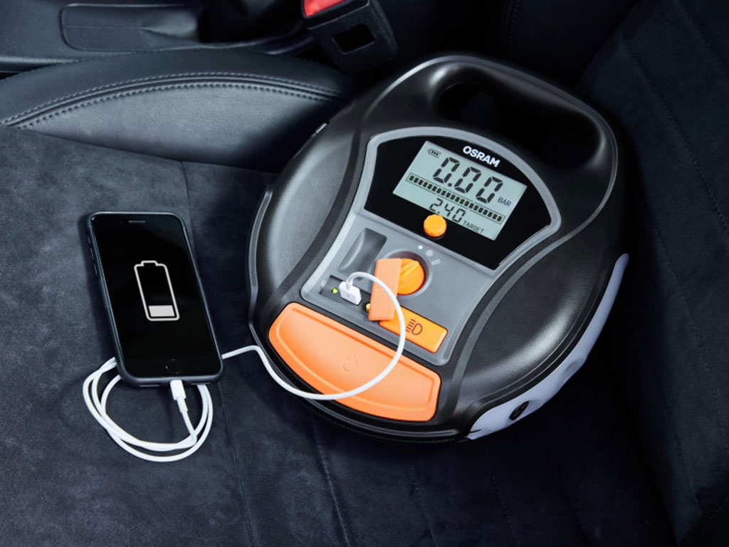Gonflez rapidement vos pneus à leur pression optimale grâce à l'OSRAM TYREinflate 6000, sans fil et rechargeable. Il ne faut que deux minutes pour gonfler un pneu de 13''. Il est livré avec un câble d'alimentation ou peut être branché sur la prise 12V de votre véhicule. Il peut également être utilisé comme banque d'énergie. Le gonfleur de pneus idéal pour les déplacements.