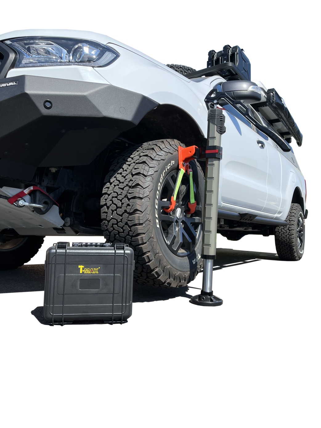 Livré aves une mallette d’accessoires comprenant un crochet standard, un crochet biseauté pour les levages sur des surfaces inclinées, un crochet rallongé, et un support de levage de roue.