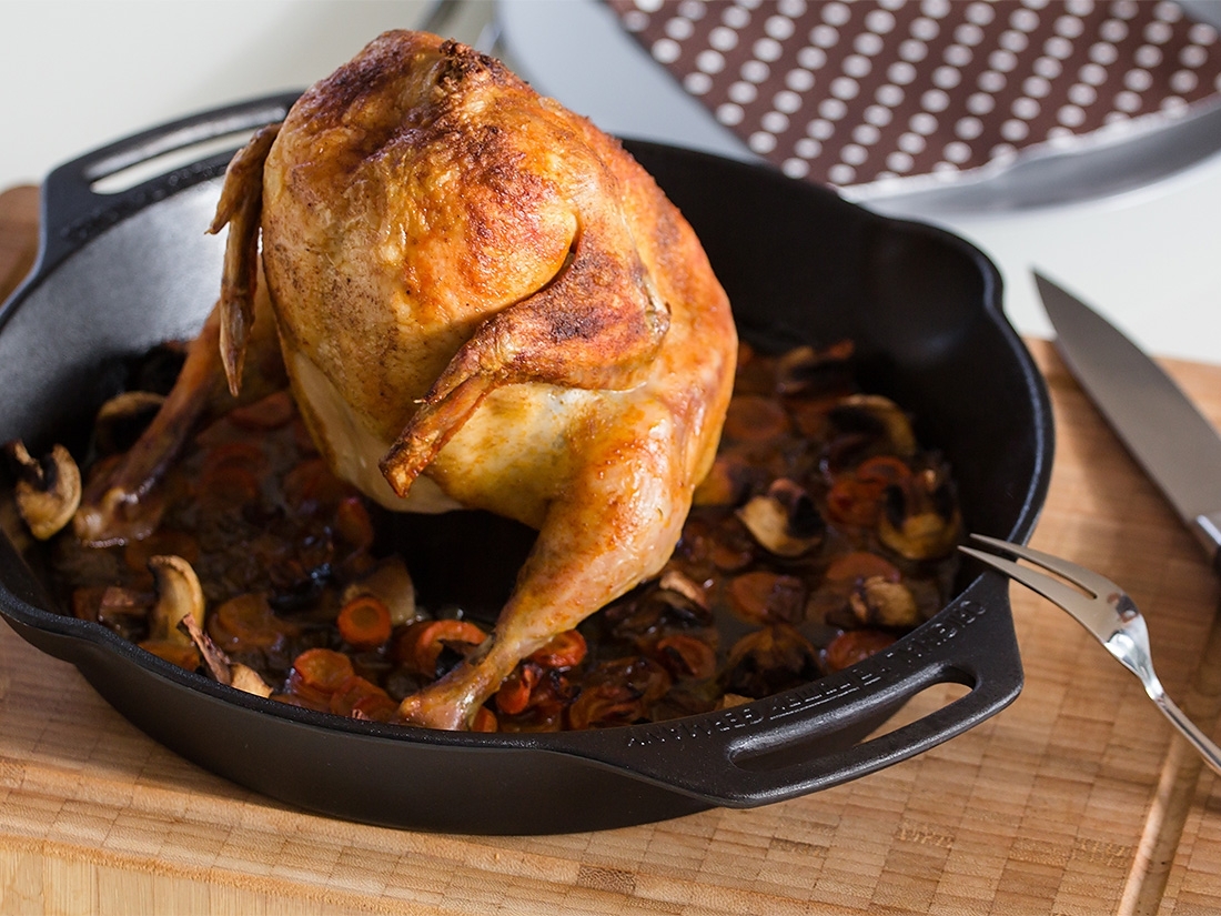 Avec sa surface pré-traitée (culottée), le Cuit-poulet cf30 est utilisable immédiatement. La fonte possédant un effet anti-adhésif naturel qui s’améliore à chaque utilisation, le cuit-poulet est facile à nettoyer et entretenir.