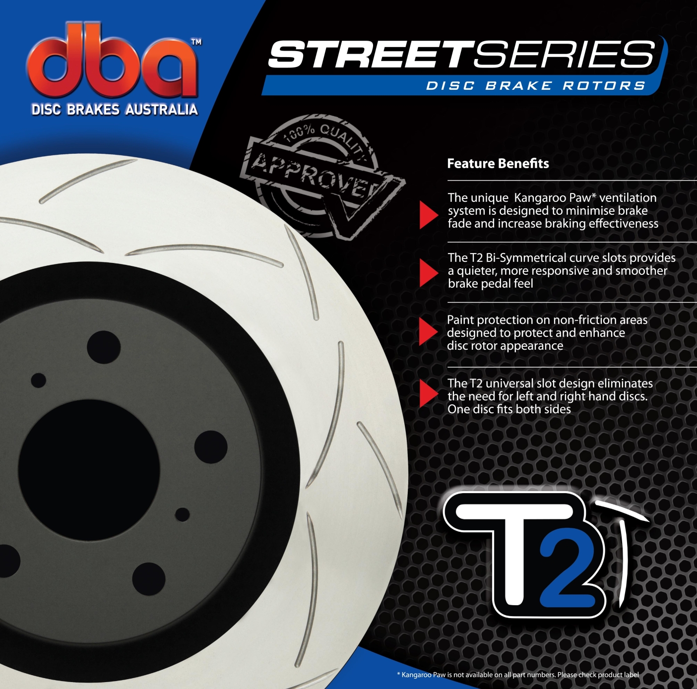 DBA a breveté son système de ventilation des disques "kangaroo Paw" ou Patte de Kangourou. Ce système permet une ventilation beaucoup plus efficace pour maintenir les disques aux températures les plus basses lors d'une utilisation intensive.