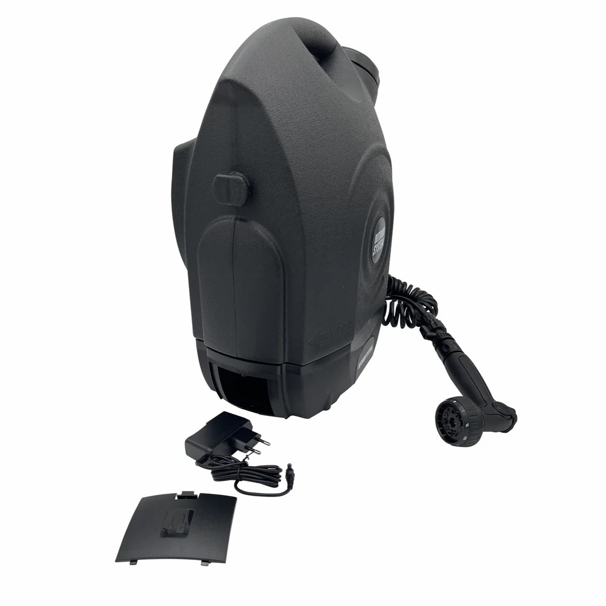 Le cœur du système repose sur un moteur de 45W alimenté par une batterie Lithium 12V. Cette technologie garantit une pression constante de 3 à 9 bars (130,5 PSI) avec un débit de 2 L/min. La batterie offre 30 minutes d'utilisation continue, largement suffisant pour plusieurs douches ou le rinçage complet des équipements de bivouac. La recharge s'effectue simplement sur prise 220V ou via la prise allume-cigare 12V de votre véhicule.