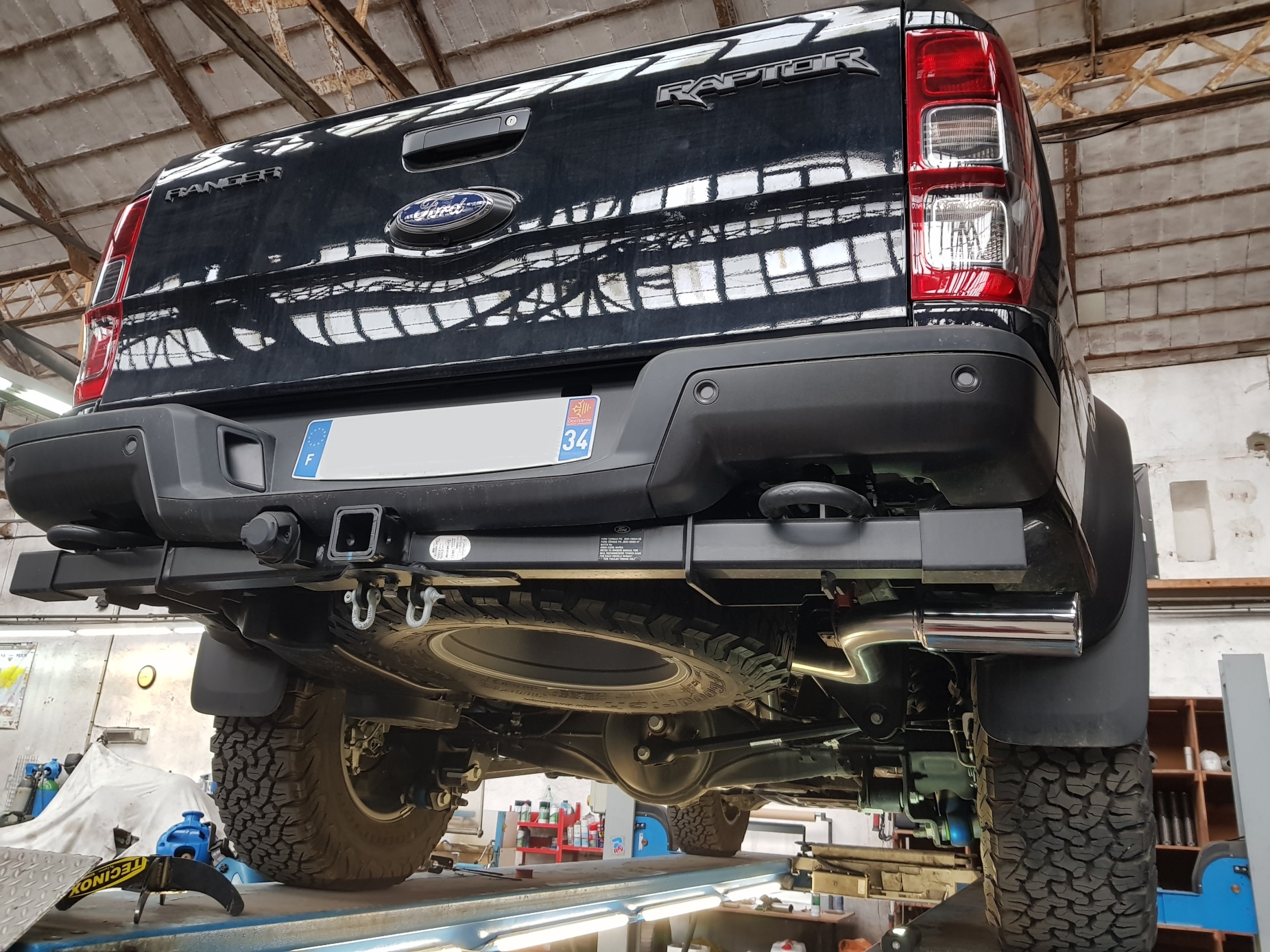 SORTIE D'ECHAPPEMENT LATERALE ARRIERE INOX AVEC EMBOUT POLI 90 MM POUR FORD RANGER RAPTOR 2.0 TDCI (SUPPRESSION SILENCIEUX INTERMEDIAIRE)