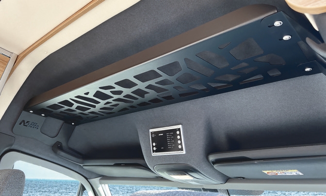 Panier de rangement monté au-dessus du poste de pilotage, permet le rangement d'accessoires (veste, vêtements, ...)