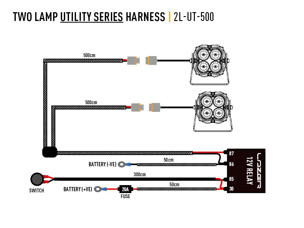 Toutes les lampes Lazer sont vendues avec un connecteur femelle pré-câblé attaché au connecteur mâle du faisceau de lampe, pour faciliter le câblage dans le système de votre véhicule.