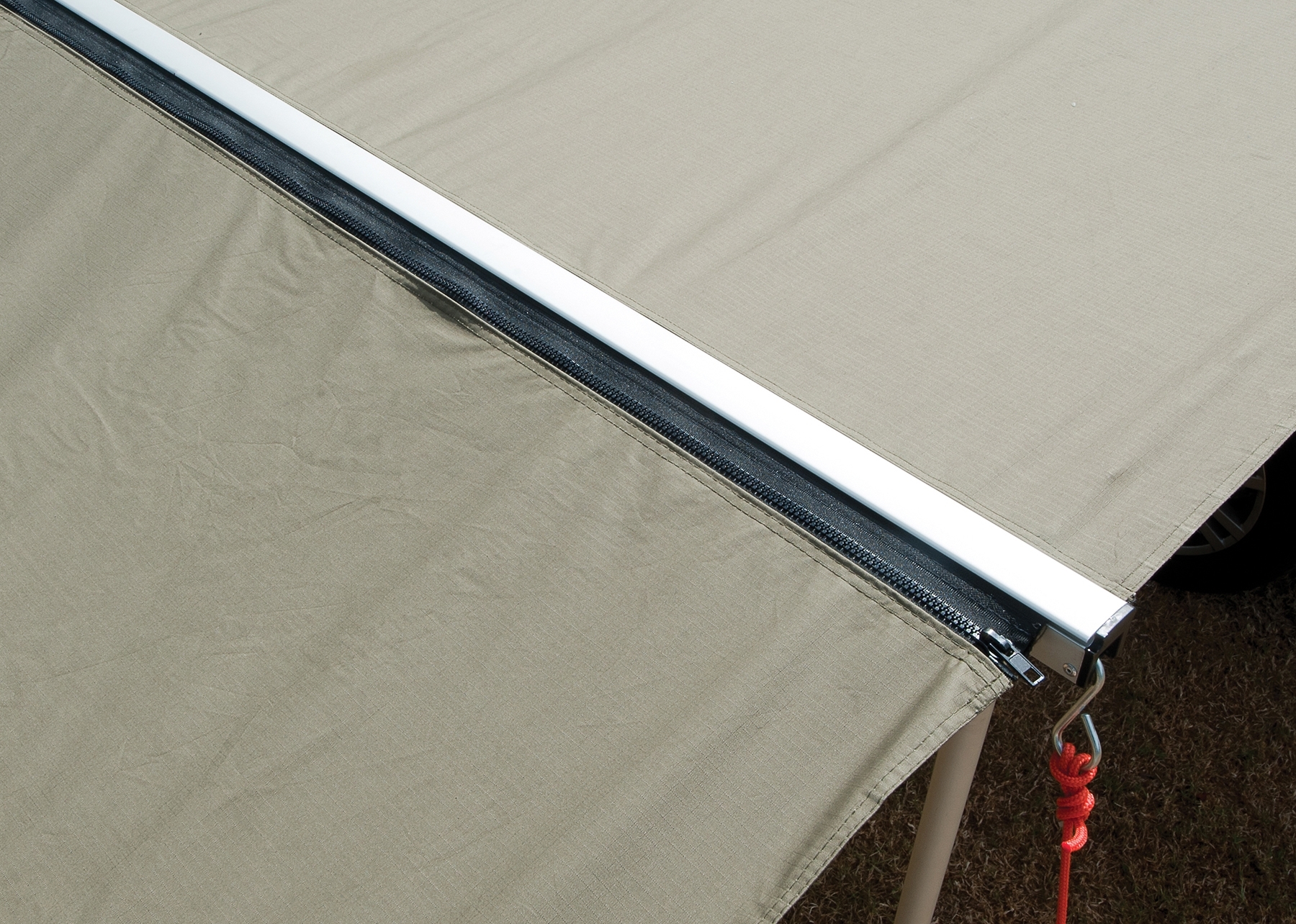 Cette fermeture coulisse dans le rail frontal de votre auvent RHINORACK SUNSEEKER 2.5 m