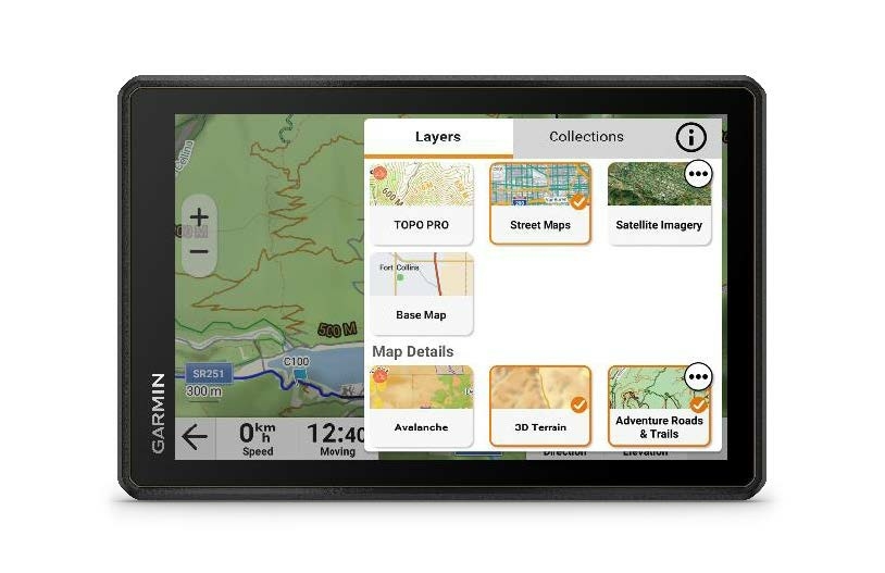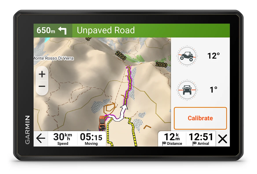 Le Tread 2 Overland offre une navigation améliorée ! Orientez-vous sur des routes et chemins en suivant les instructions de navigation sur route avec City Navigator et compatible Outdoor Maps+ pour télécharger des cartes additionnelles en fonction des besoins ( Topo pro, zones d'avalanche, pistes, etc.)