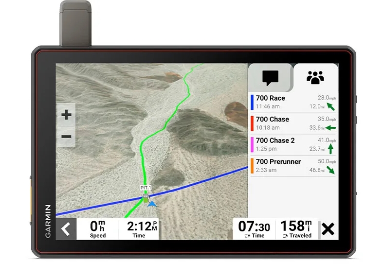 - Le suivi d'équipe avec la technologie intégrée inReach® permet aux véhicules de course et d'assistance d'échanger des messages et de se suivre en temps réel1.