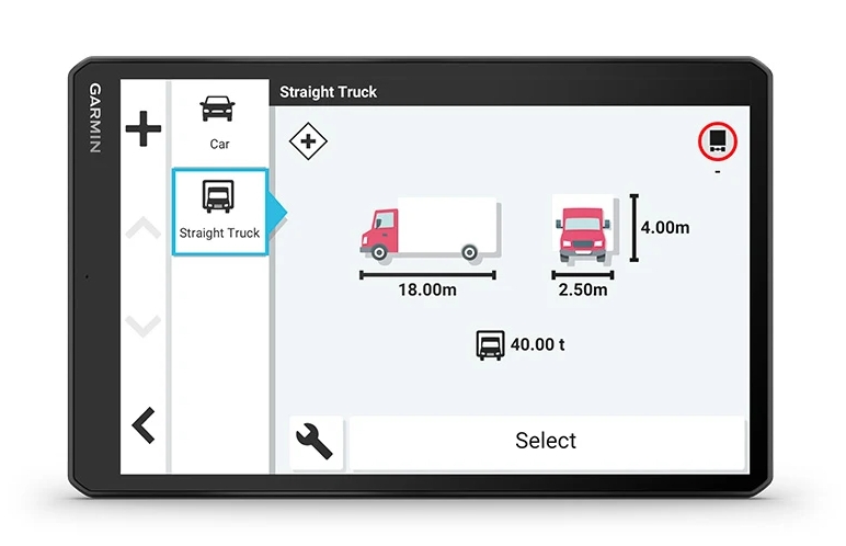 - Ce GPS 10″ propose des itinéraires personnalisés en fonction de la taille et du poids de votre véhicule, des suggestions stratégiques pour le plein de carburant et les pauses et une planification des arrivées innovante.