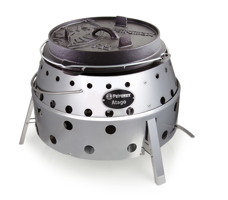 Très robuste et indispensable pour les amateurs de plein air : l’Atago Petromax est un appareil très polyvalent utilisable comme barbecue, four, cuisinière ou brasero. L’Atago fonctionne au charbon de bois, aux briquettes ou au bois de chauffage. Ses quatre fonctions de base offrent de nombreux modes de cuisson et options culinaires.