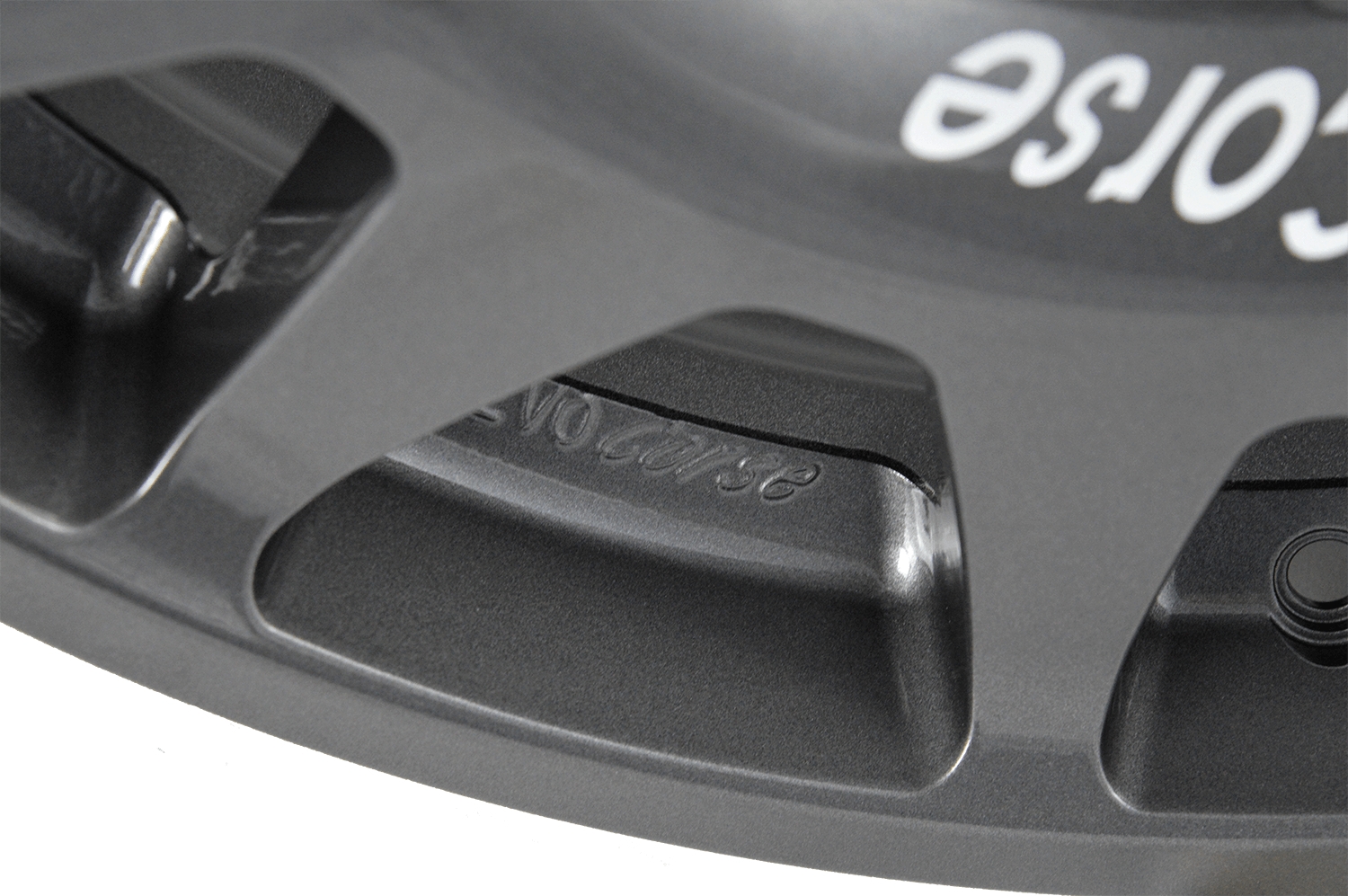 Les rayons internes du bord de la jante ont un profil qui rentre vers le centre, ce qui permet d'avoir un déport négatif protégeant les pièces mécaniques des gravillons et du sable et conçu pour laisser suffisamment d'espace pour les gros freins.