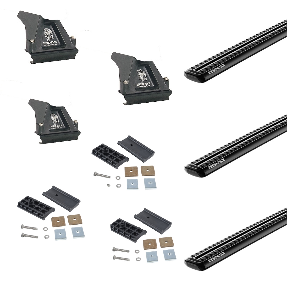 comprend :- 3 barres de toit Rhino Rack Sportz noires 1800 mm- 3 kits de pieds RLTFMS- 3 kits adaptateurs VA-FK1