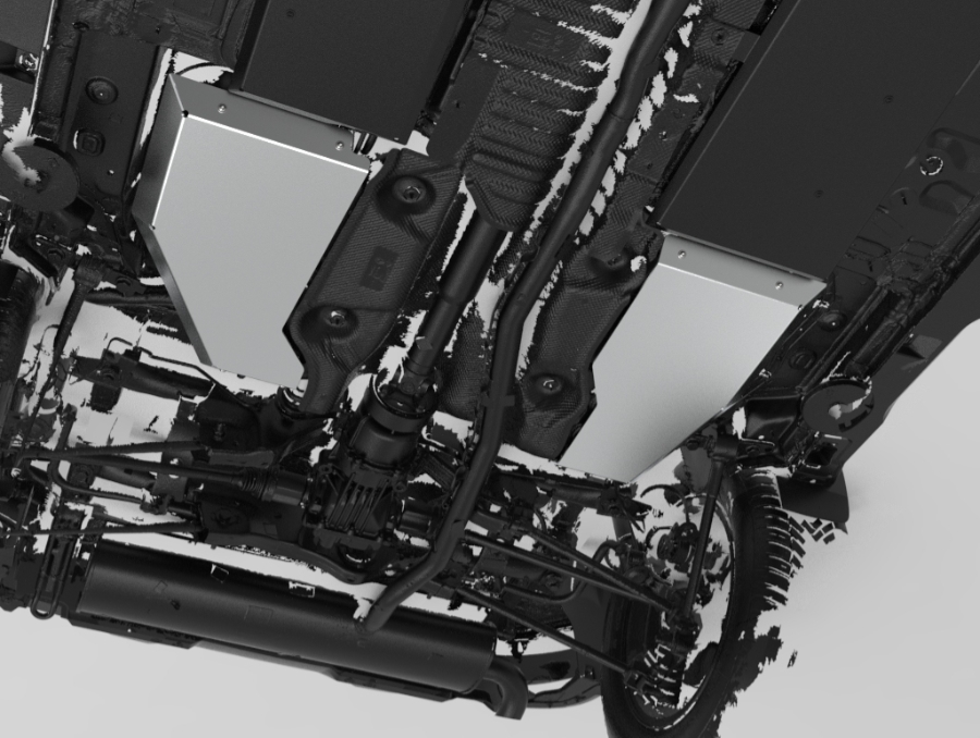 Le design a été spécialement étudié pour la pratique du tout-terrain avec une protection optimum des organes mécaniques. Le blindage est en tôle aluminium haute résistance. Le montage permet un accès facile au véhicule pour l’entretien courant et le montage se fait suivant les points de fixations déjà présents sur le véhicule.