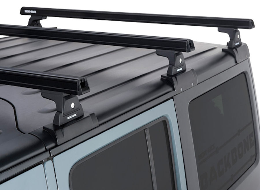 KIT BACKBONE BARRES DE TOIT HEAVY DUTY RHINO RACK 1500 MM NOIRES POUR JEEP WRANGLER JK 4 PORTES (AVEC PIEDS RLT600)