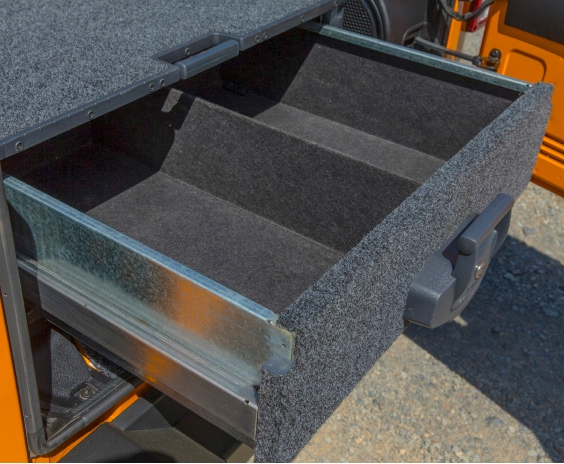 pour un rangement pratique de tous vos objets, des équipements de secours (manilles, poulies, sangles) à vos vêtements et chaussures, le tiroir traditionnel est livré avec un couvercle coulissant offrant la possibilité de monter un réfrigérateur sur son couvercle, qui pourra être tiré dans et hors de votre véhicule.
