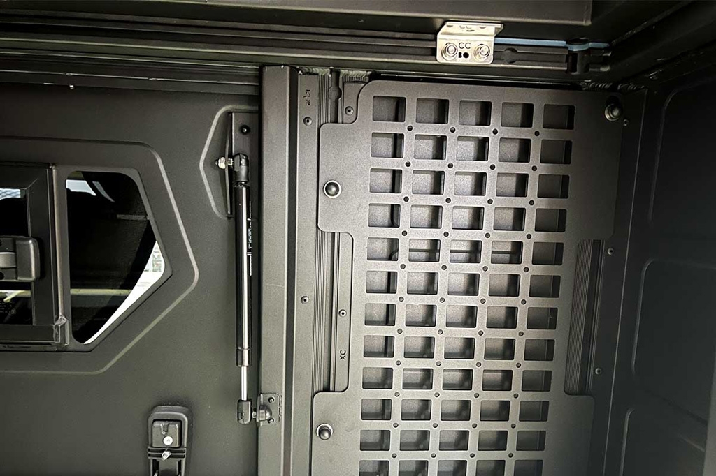 Découvrez l'organisation ultime dans votre camping-car avec la plaque Molle de remplissage latéral intérieur.