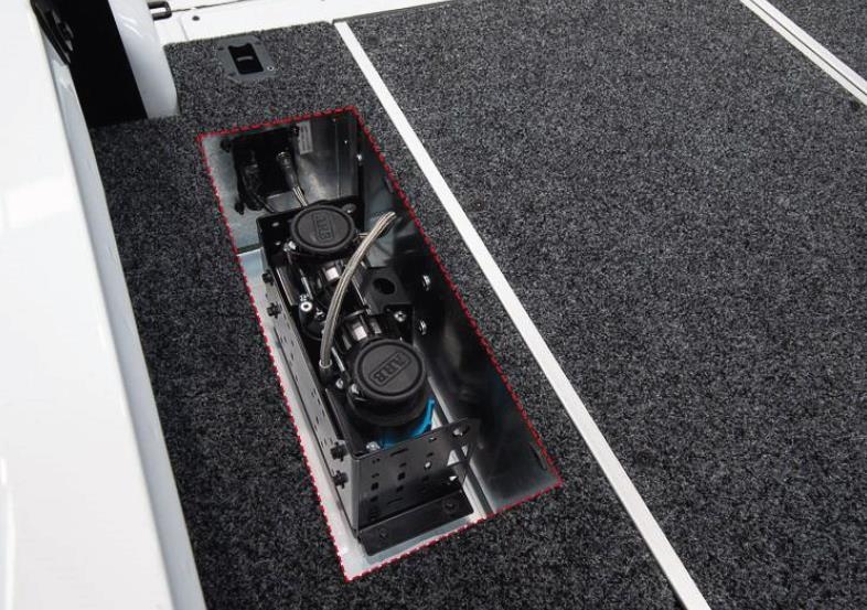 Le kit de montage permet l'installation de modèles de compresseurs ARB. Un support universel supplémentaire permet également le montage du reservoir d'air 4L ARB.