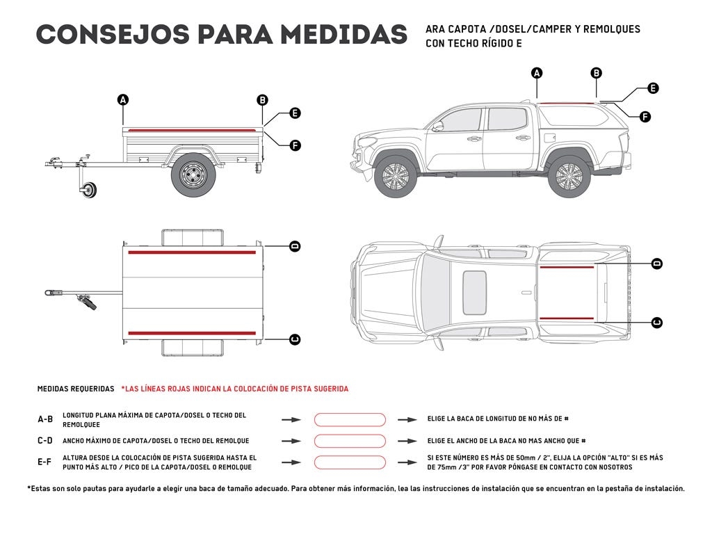 Ce kit de galerie est destiné au hard top de Pick-Up/aux cellules de camping et aux remorques qui ont une dimension de toit approximative de 1425mm/56.1'' (l) x 1560mm/61.4'' (L). Le plateau Slimline II s'installe sur les six (6) pieds fournis qui glissent dans les rails fournis. La paire de rail d'une longueur de 1500mm/59? peut facilement être montée sur votre hard top/cellule ou remorque. Regardez le guide d'installation pour le montage des rails dans l'onglet INSTALL pour plus de détails.