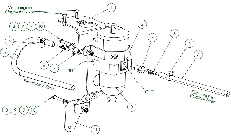 Support pour le montage d'un préfiltre à carburant Racor série 500FG pour Toyota Land Cruiser GRJ 76/78/79 V6 4.0L essence N4-Offroad