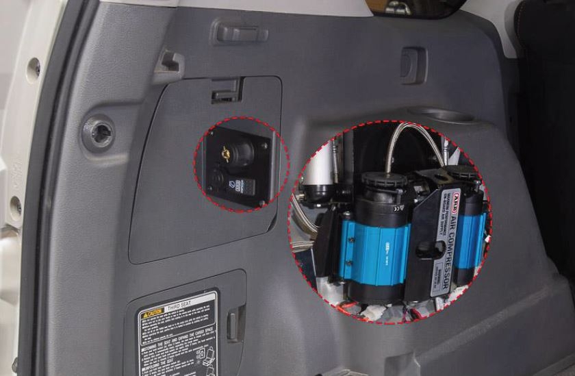 Kit de montage pour compresseurs ARB dans la garniture latérale à l'arrière GAUCHE du véhicule.
