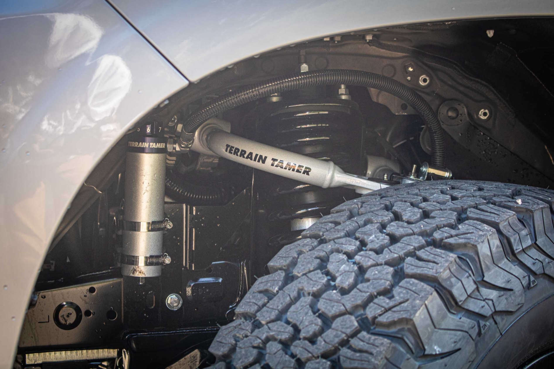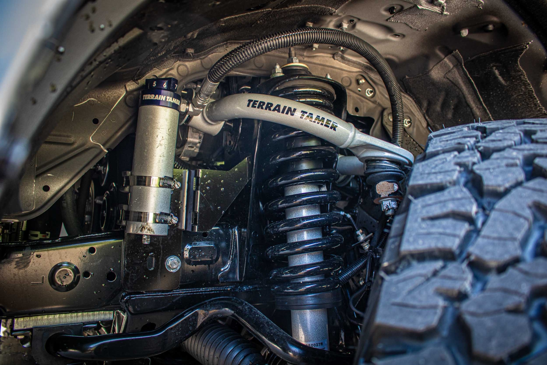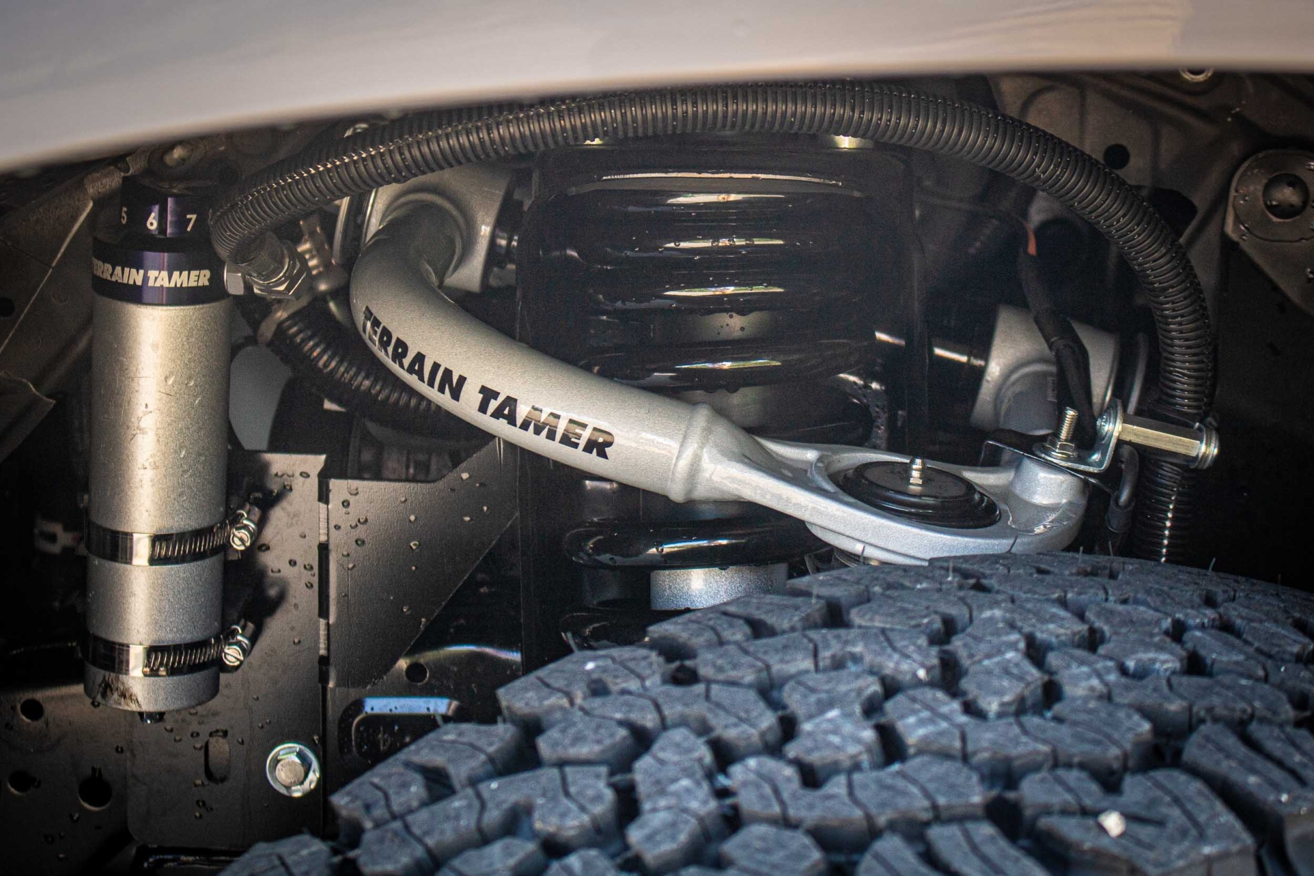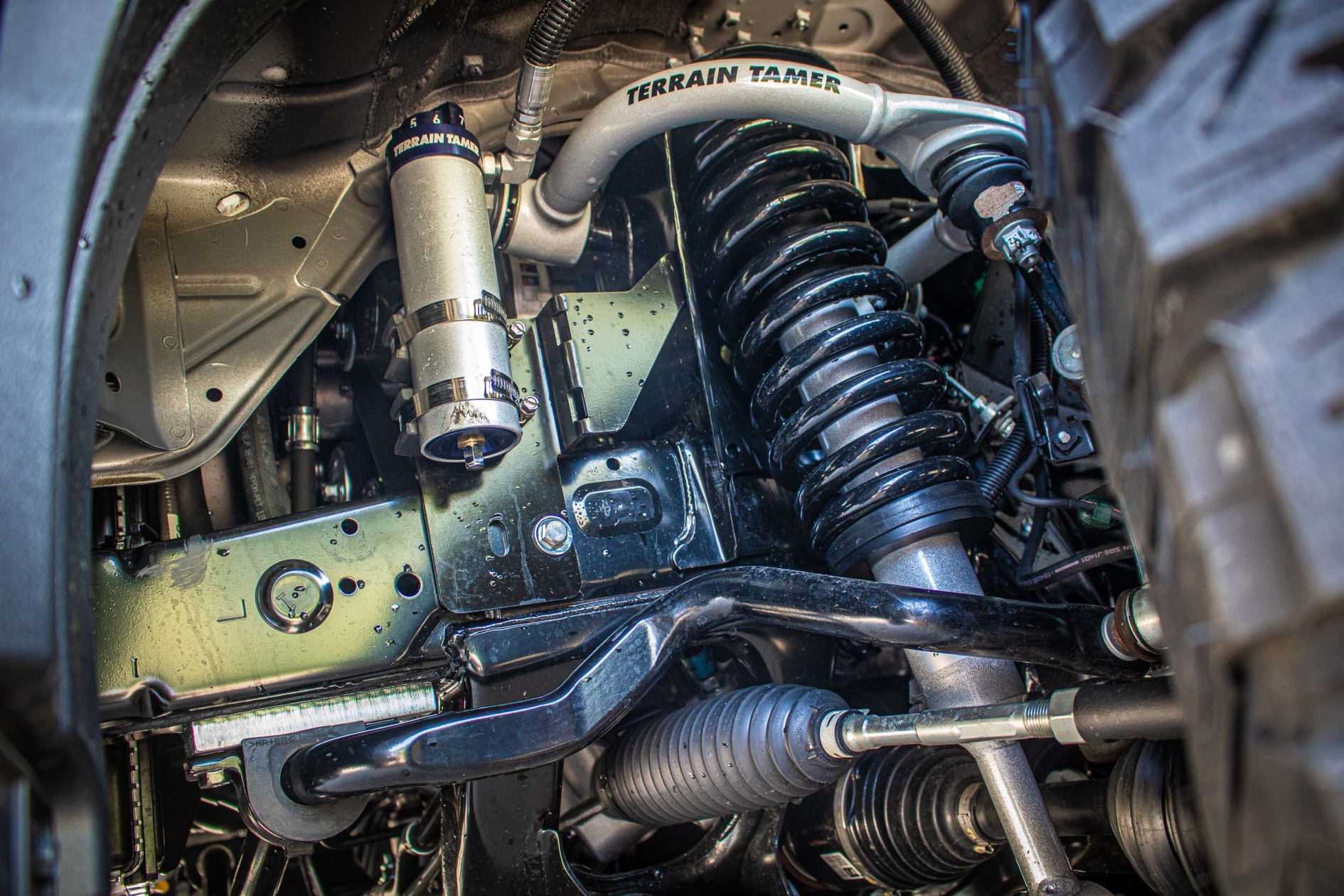 Les kits de suspension Terrain Tamer sont livrés complet, avec les ressorts, les amortisseurs, les lames ainsi que le kit de montage (silent-blocs, brides, axes et jumelles graissable), et l'amortisseur de direction (si disponible pour le véhicule).
