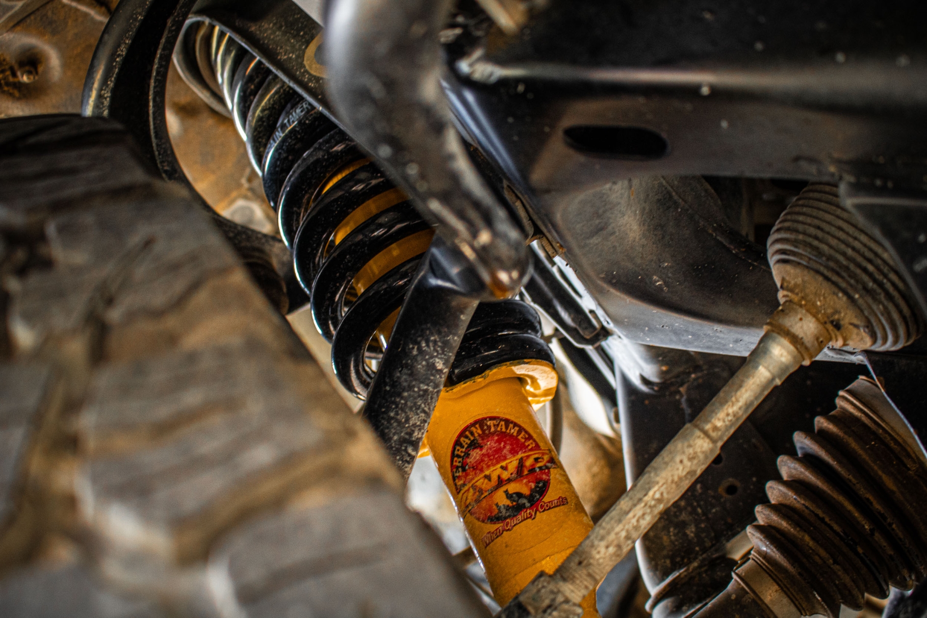 Les kits de suspension Terrain Tamer sont livrés complet, avec les ressorts, les amortisseurs, les lames ainsi que le kit de montage (silent-blocs, brides, axes et jumelles graissable), et l'amortisseur de direction (si disponible pour le véhicule).