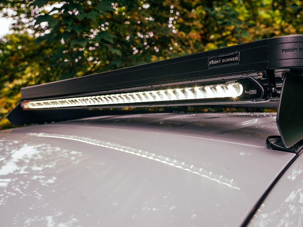 Sachant que certaines installations sur le toit peuvent être soumises à un certain degré de bruit du vent, le kit de montage Front Runner comprend une bande de mousse de 1,25 m de long avec un support adhésif. La bande de mousse peut être ajoutée sur le côté supérieur de la barre lumineuse pour réduire le bruit du vent si nécessaire.