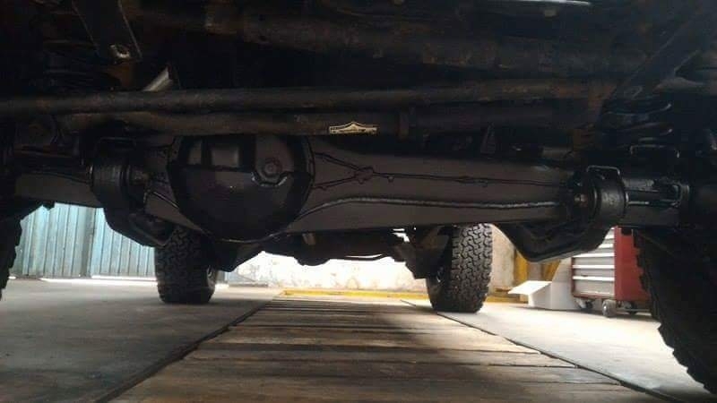 Le pont avant sur un Toyota HDJ 80 peut se tordre facilement sur une saignée ou encore sur un talonnement de suspension.