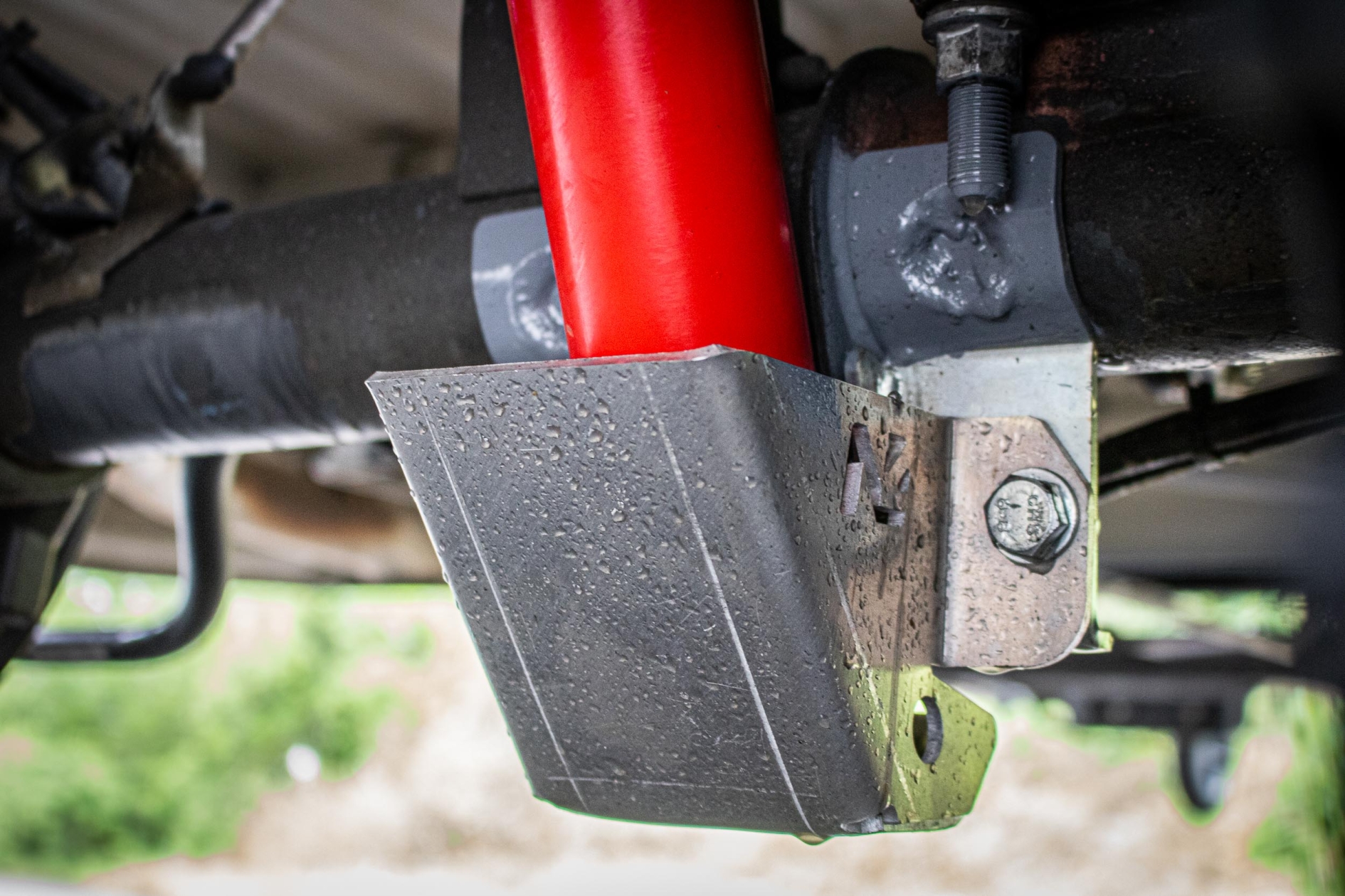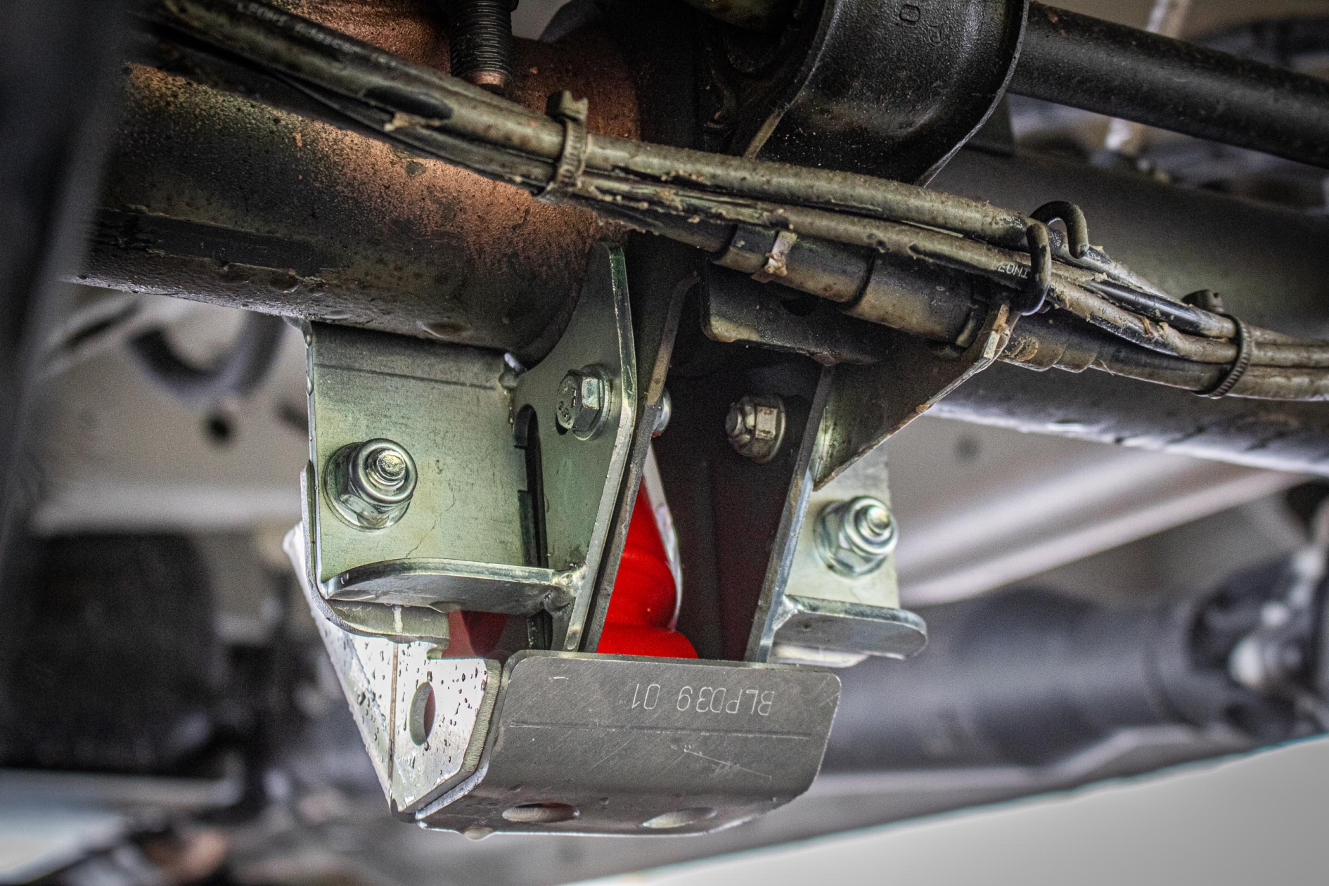 Les ancrages inférieurs d’amortisseur arrière sur les Mercedes sprinter sont très exposés en avant du pont. Ils peuvent se tordre sur un choc ou un effort pas dans l’axe.
