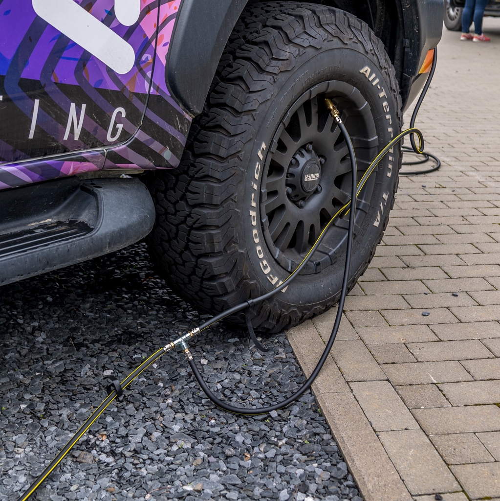 Le système d'équilibrage de pression automatique, Indeflate, est un dispositif innovant permettant de gonfler ou de dégonfler simultanément deux à quatre pneus tout en égalisant automatiquement la pression entre eux une fois qu'ils sont connectés. Fabriqué en Afrique du Sud, cet appareil a fait ses preuves en résistant aux rigueurs de la nature et aux voyages à travers les terrains les plus hostiles.