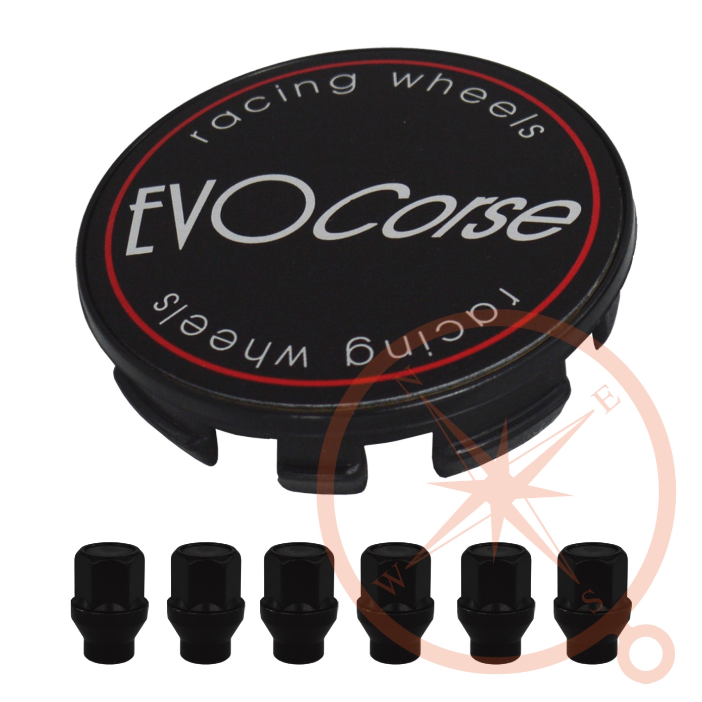 Kit composé d'un cache moyeu avec logo Evo Corse et 6 écrous M14x1.5 pour jante DAKAR ZERO