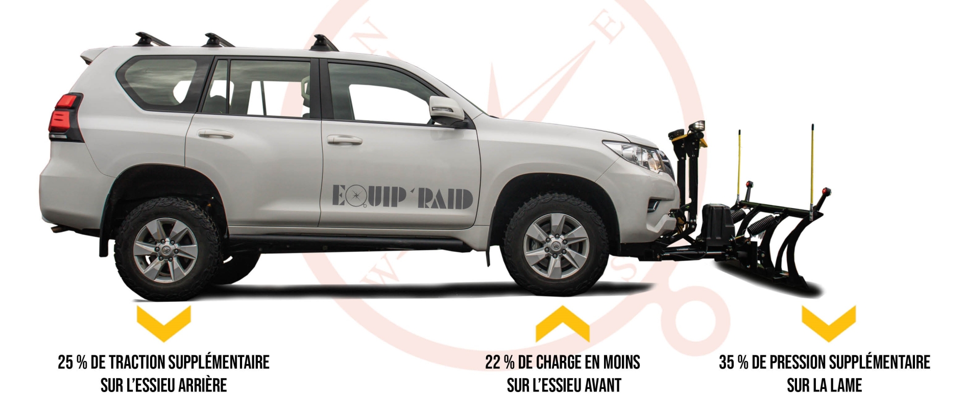 - La compensation de niveau innovante permet de dégager avec la lame en position verticale, même si le véhicule est incliné d'un côté