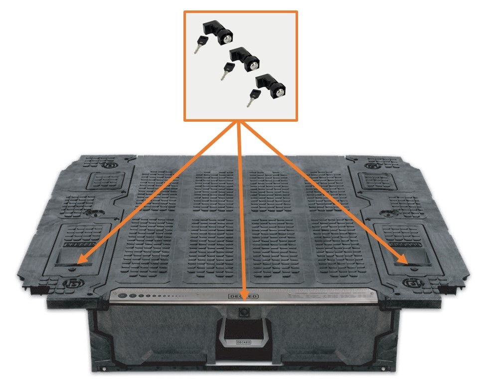 Ensemble de 3 serrures et 2 clés assorties pour les tiroirs Decked et ses rangements latéraux