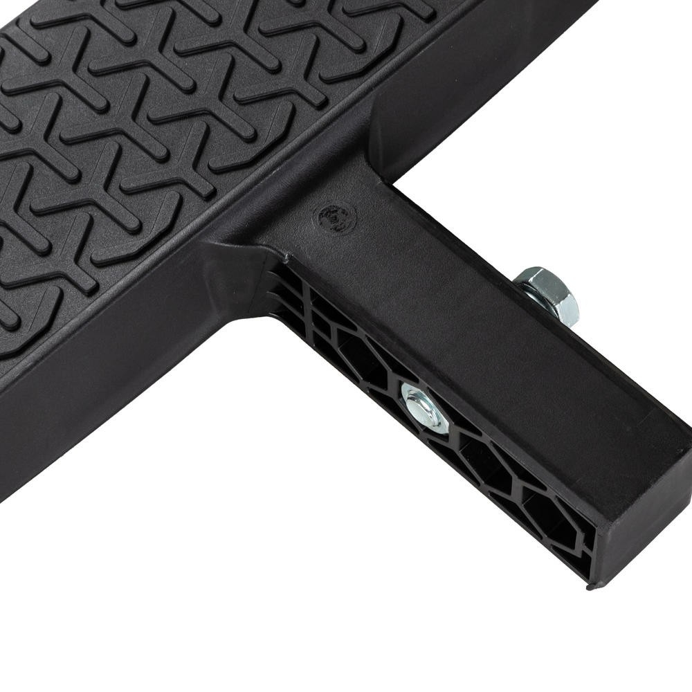 La marche commence à environ 60 mm de la face du récepteur d'attelage carré (certains véhicules peuvent avoir des composants qui empêchent la marche d'être correctement fixée par la goupille de votre barre de remorquage).
