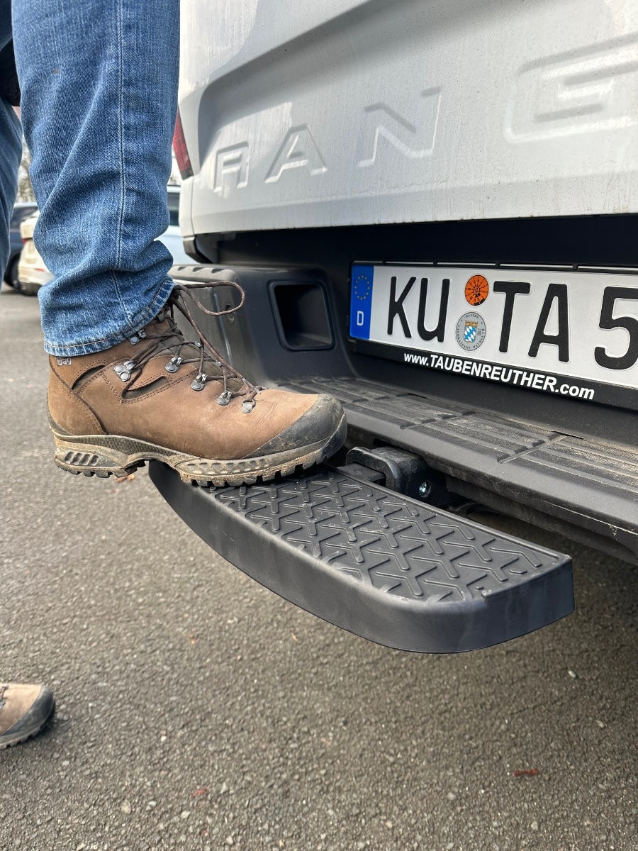 Marchepied pratique pour augmenter l'accessibilité aux accessoires montés sur la galerie de toit. La hauteur est également idéale pour une courte pause si vous cherchez un endroit pour vous asseoir.