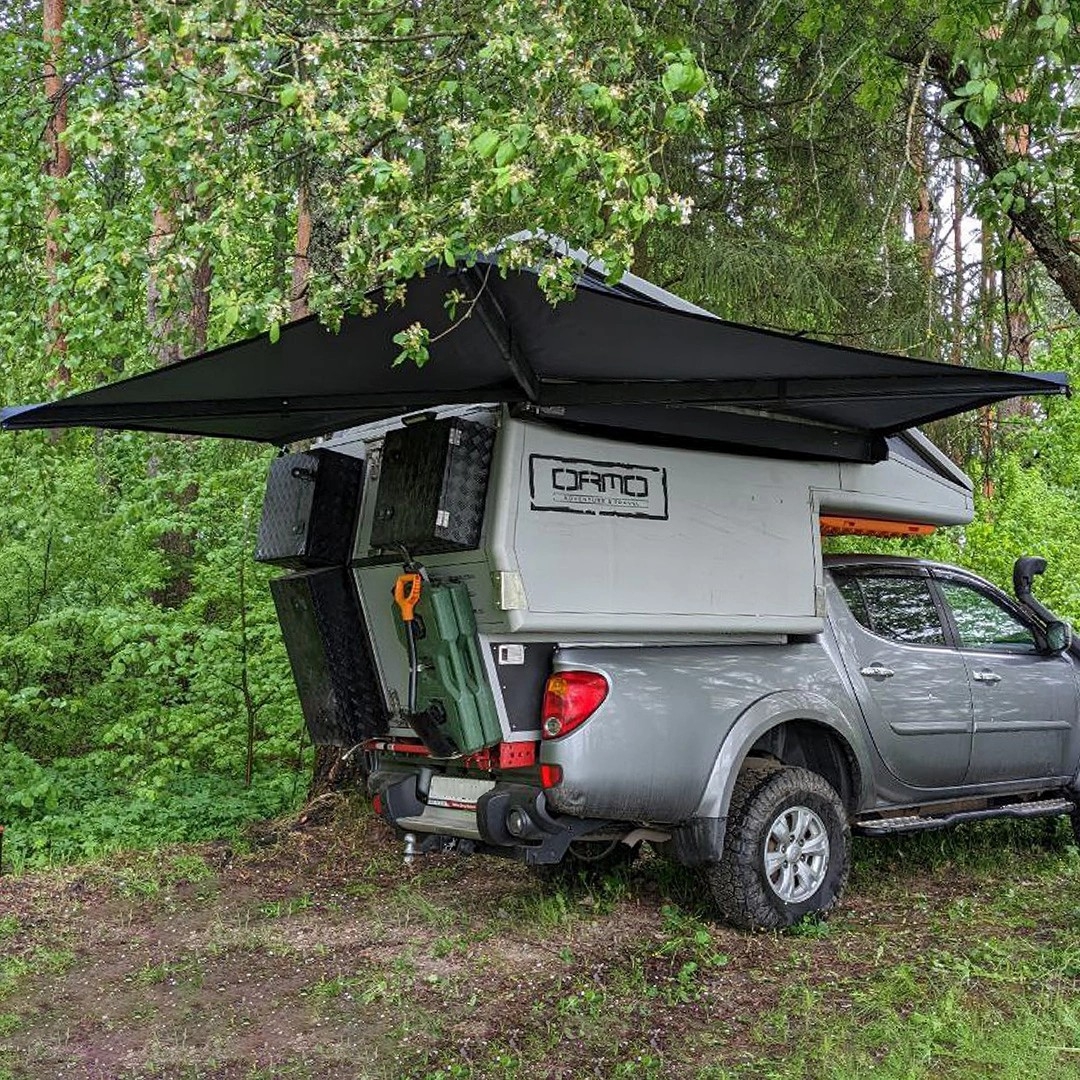 Créez un espace de vie XXL avec l'auvent 270° (1.8M) Heavy Duty pour cellule Ormo Camper. Protection soleil/pluie. Installation rapide. Disponible chez Equip'Raid, expert 4x4.