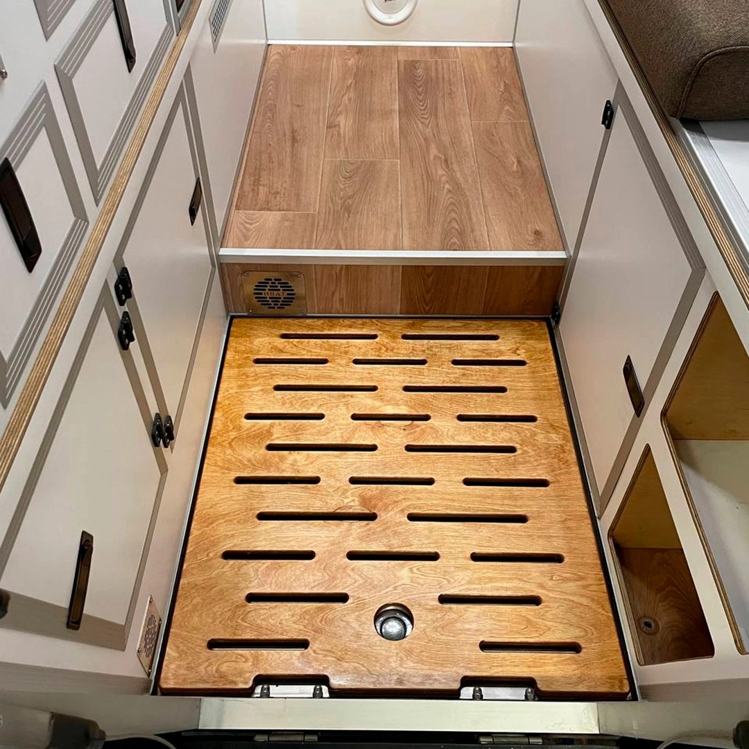 Votre cellule Ormo Camper est déjà équipée d'une douche extérieure de série, parfaite pour l'été. Mais lorsque le temps se gâte, que les températures chutent ou que vous campez dans un lieu peu intime, l'option Douche Intérieure devient un luxe indispensable.