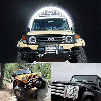 ces optiques se montent en remplacement des optiques d'origines halogènes qui équipent tous les véhicules à feux ronds 7 pouces (exemples : Jeep, Toyota, Suzuki, Mitsubishi, ...)