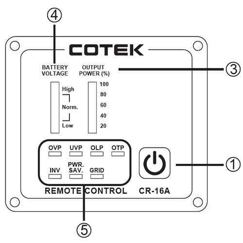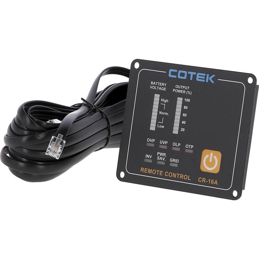 La commande à distance CR-16A fait partie de la série CR des commandes à distance de la marque Cotek. Elle vous permet de consulter les données et les alarmes de votre convertisseur pur sinus grâce à ses témoins LED.