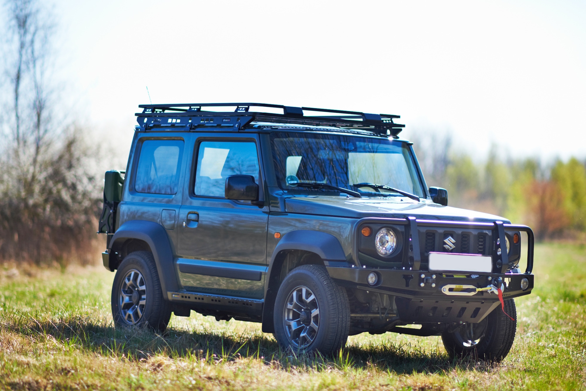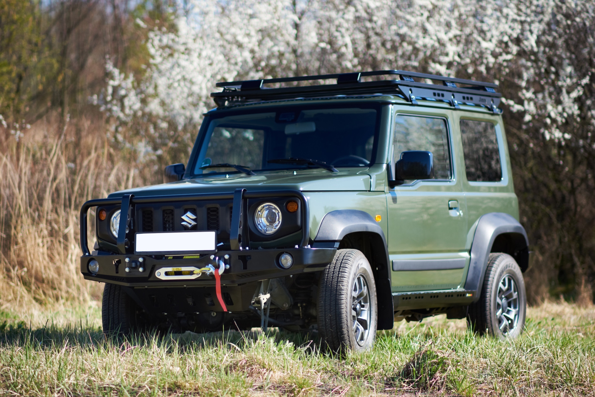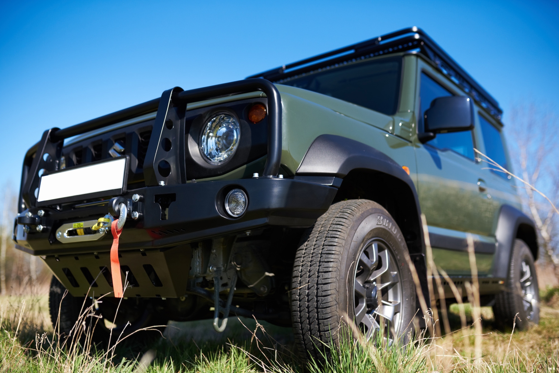 Pare buffle avec support pour plaque d’immatriculation, dédié au SUZUKI JIMNY IV 1.5 à partir de 2018.